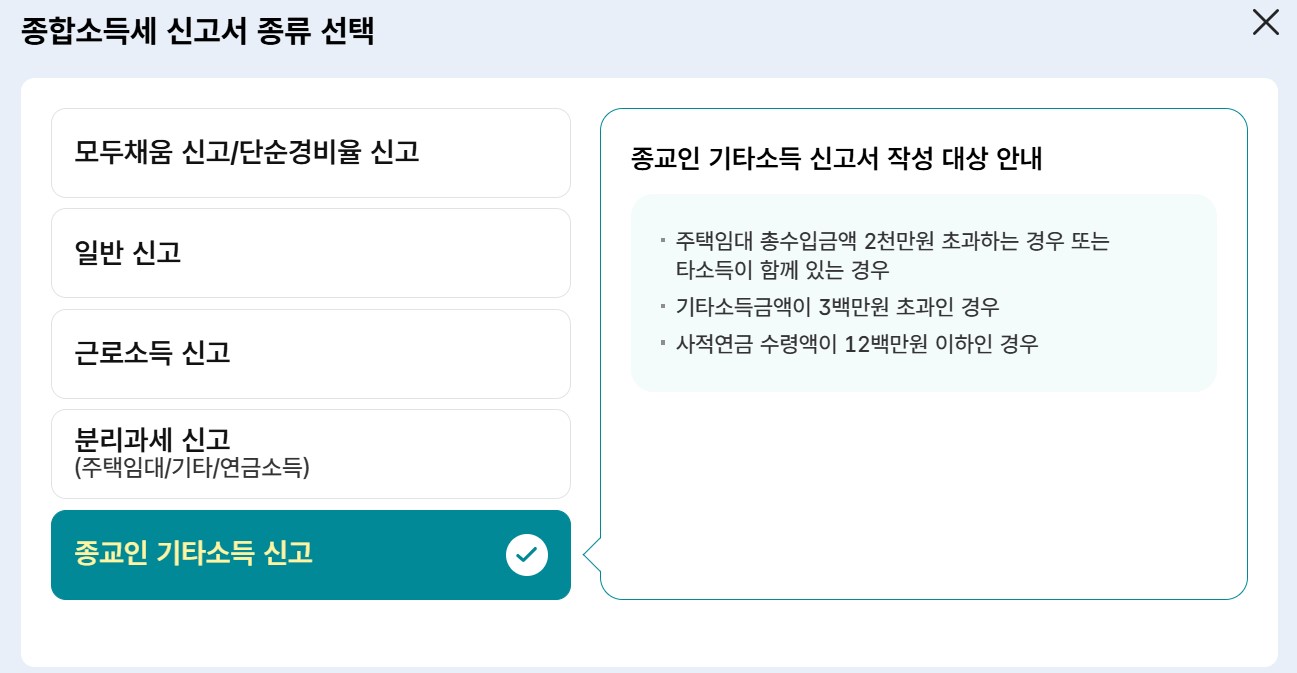 - 근로소득 외 다른 소득(사업, 임대, 연금, 기타)이 있는 직장인