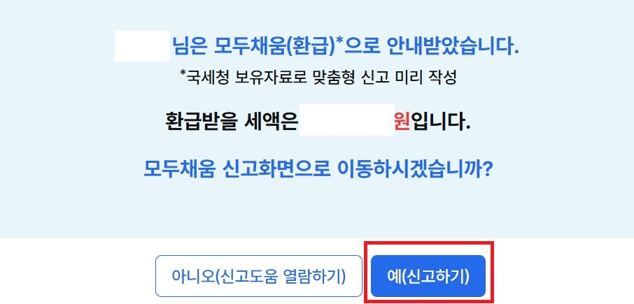 모두채움(환급)서비스로 인해 너무나 편하게 신고 가능합니다.
