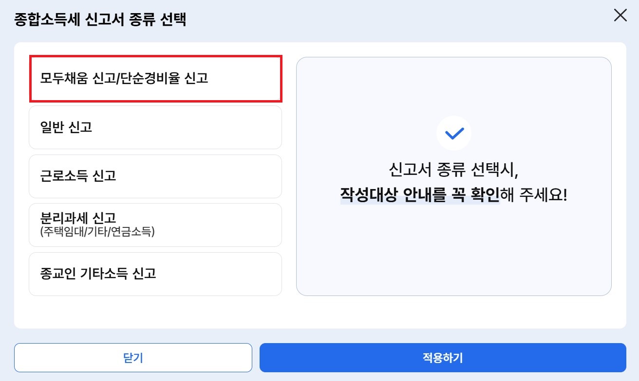 모두채움 서비스는 주로 다음과 같은 납세자를 대상으로 합다.