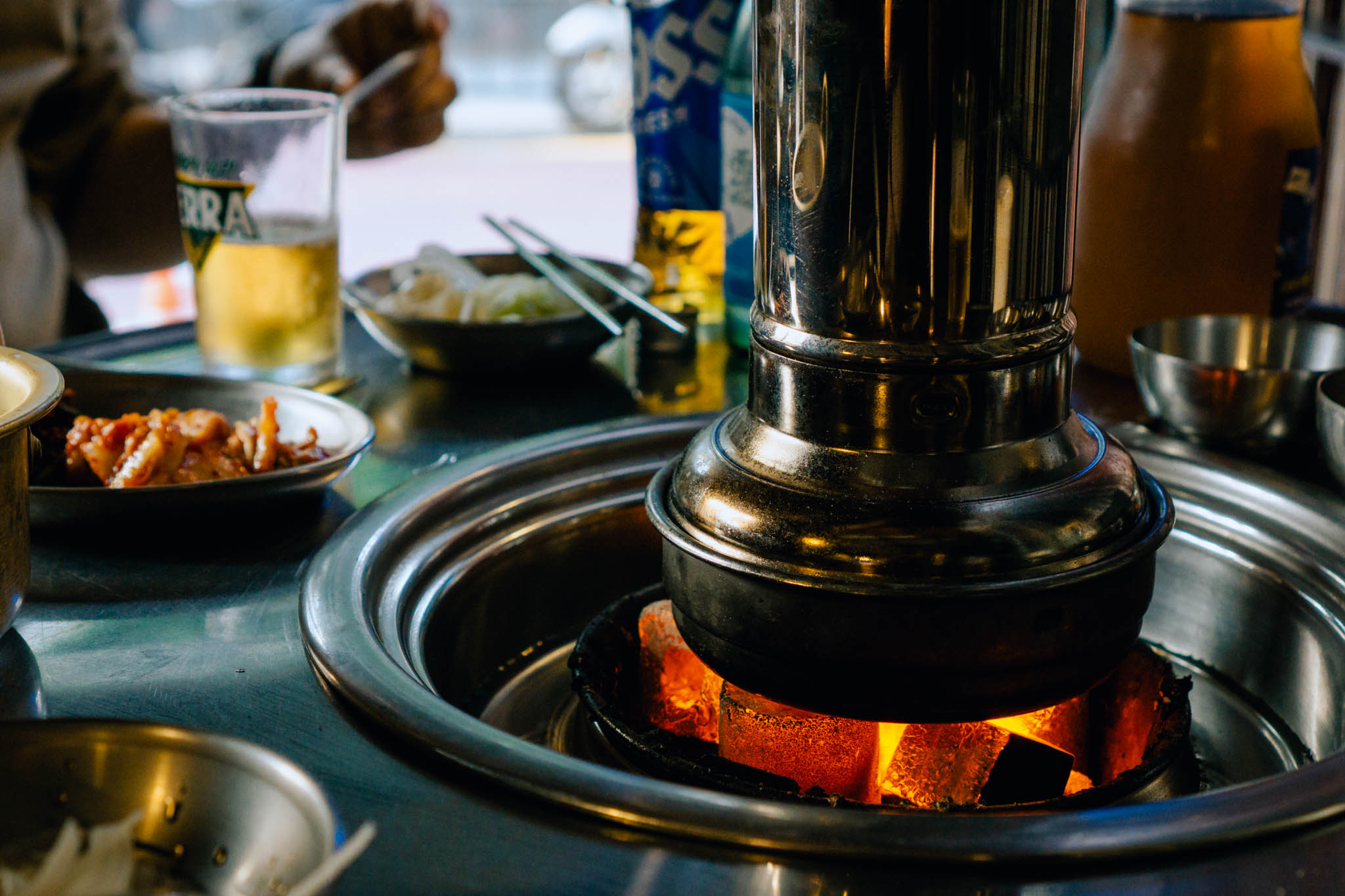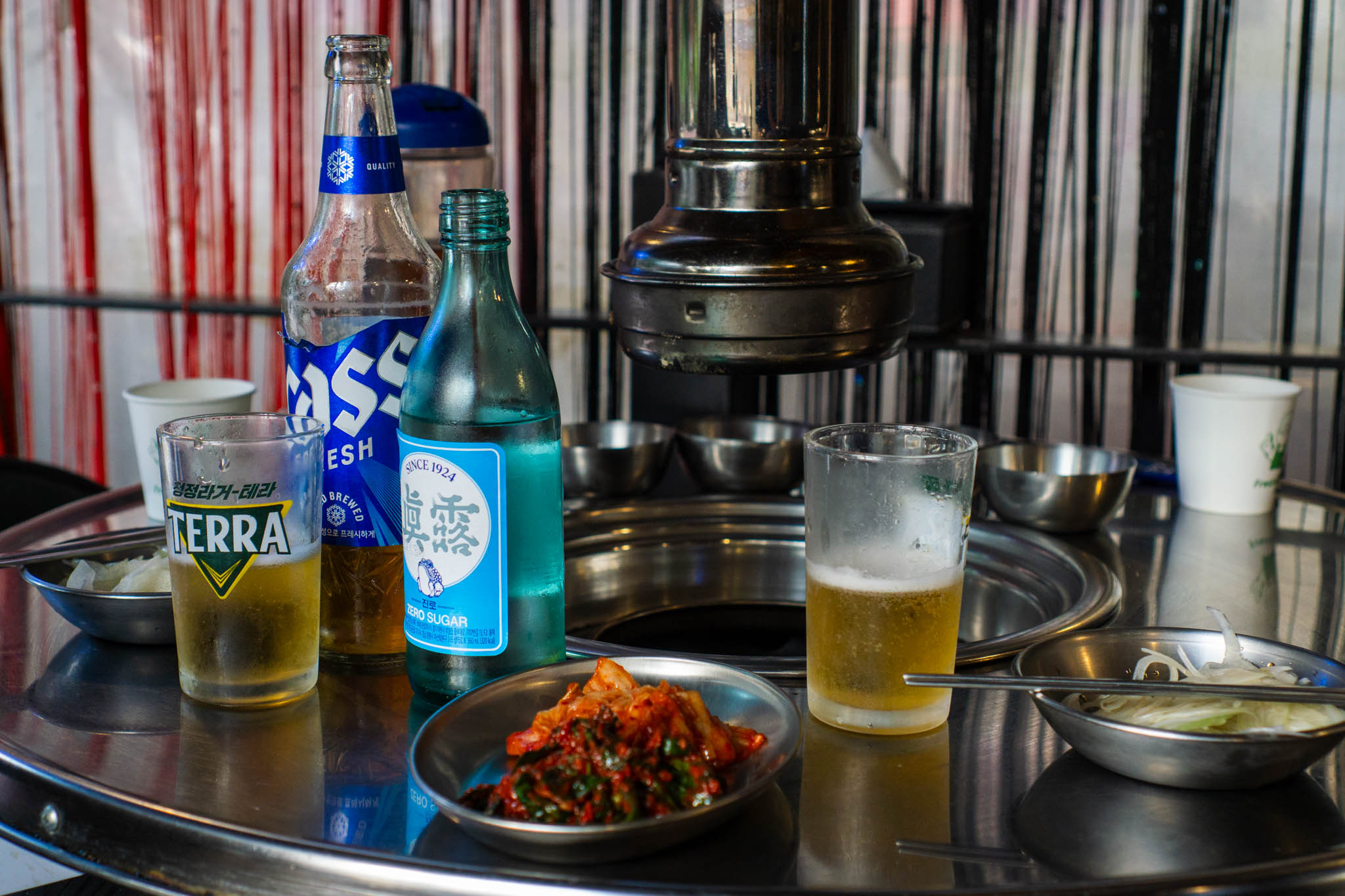 고기 나오기 전 일단 소맥부터.. 그 날은 살짜쿵 더벘던..