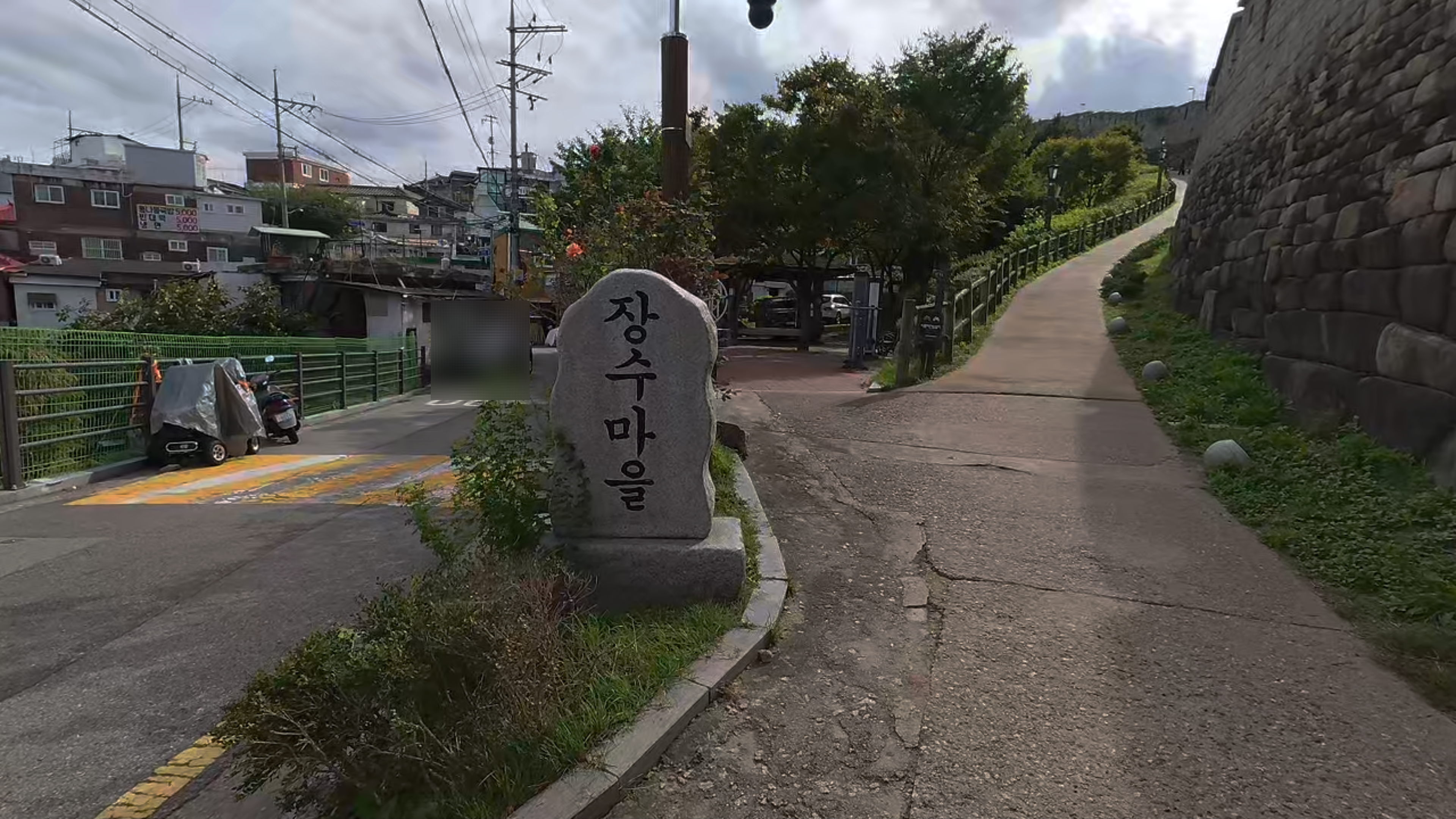 이후 조금 더 걷다보면 장수마을이라는 곳이 나오는데.. 성곽과 바로 잇닿아 있는 마을이다.
