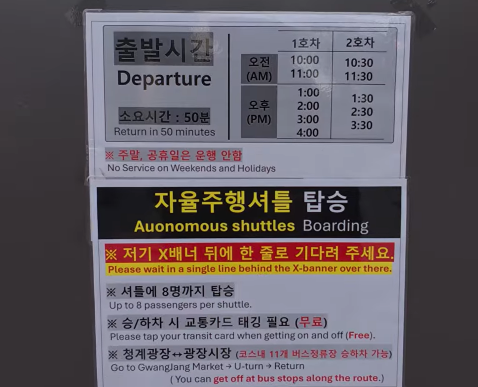 - 요금 : 현재 무료(교통카드 태그 후 탑승, 2026년 하반기 유료 전환 예정)