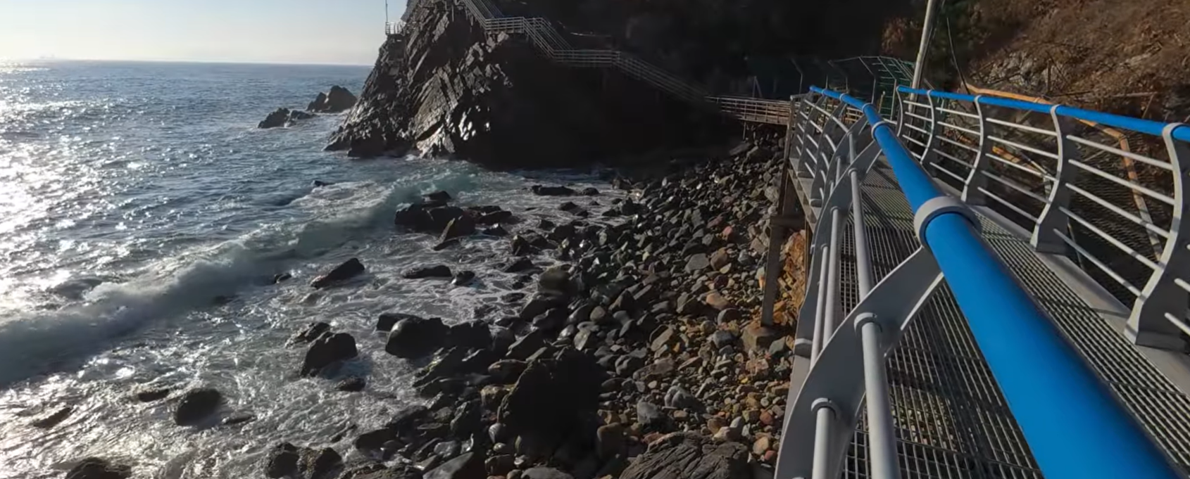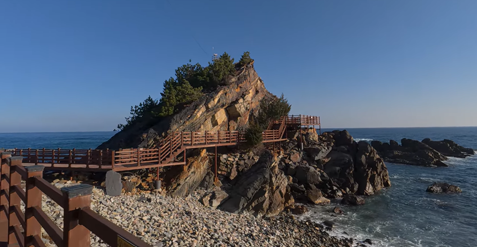 - 부채바위/기암괴석 + 윤슬 + 파도 조합이 좋음