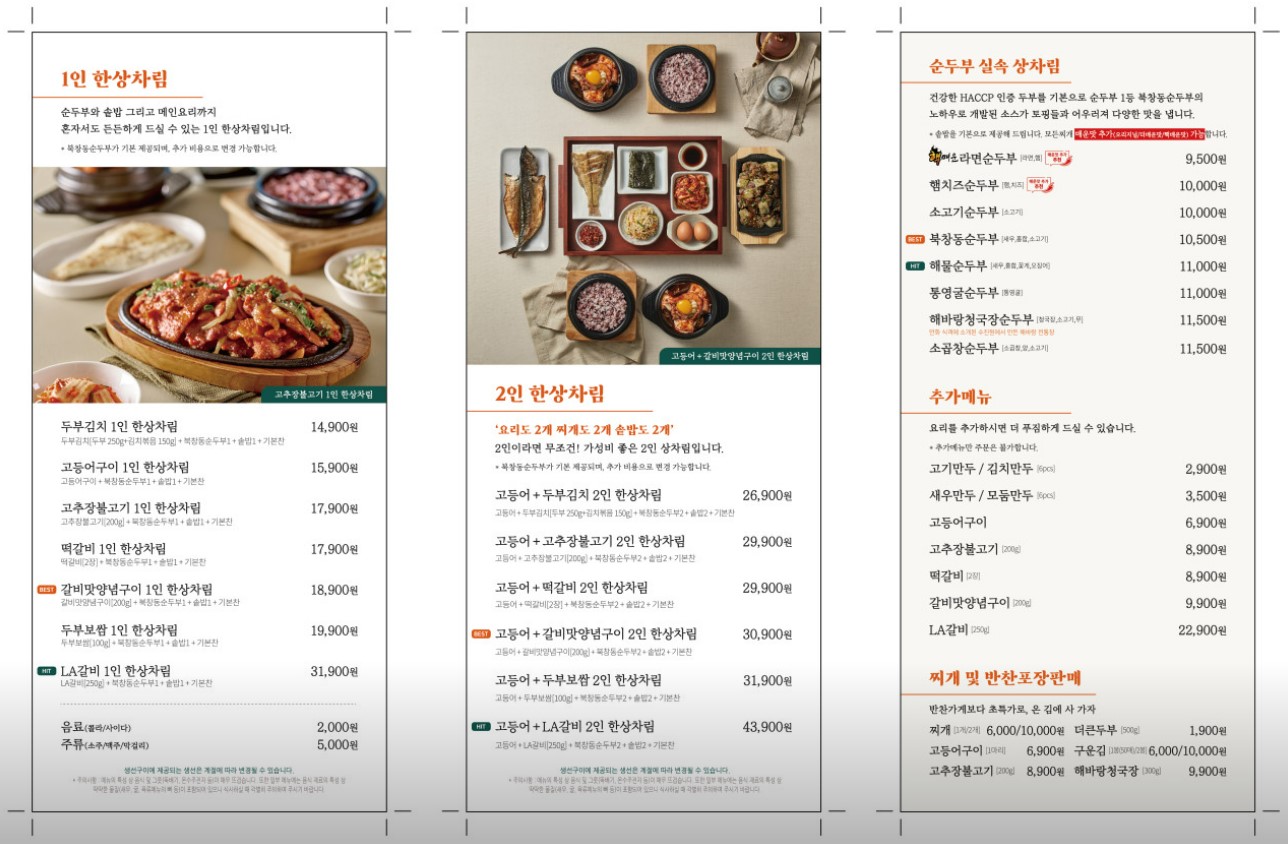 3명이서 가면 2인 한상차림 중 메뉴 하나와 순두부 실속 상차림으로 주문하면 딱 좋을 듯!!