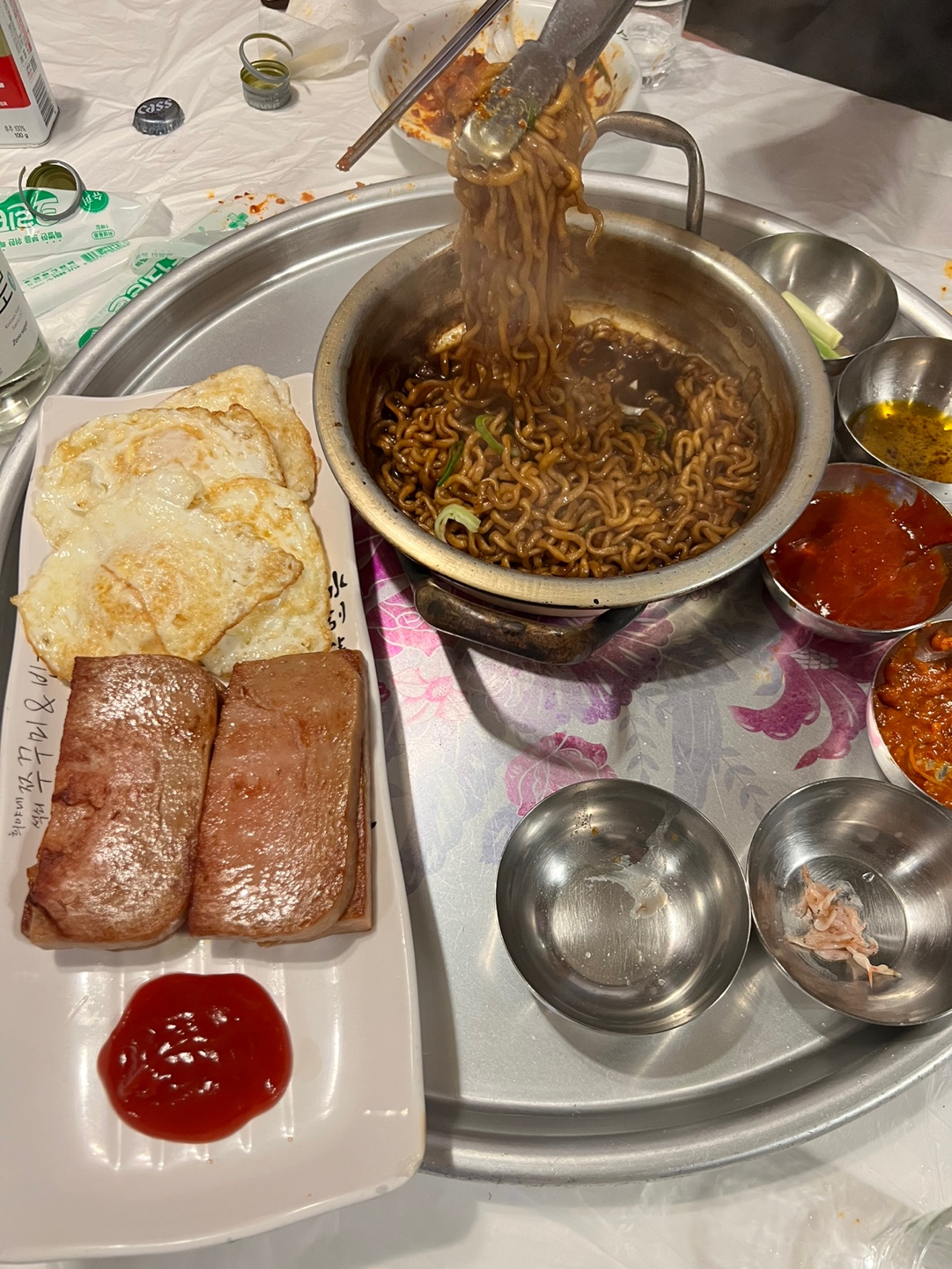추가로.. 짜파게티 2인분 스팸구이+달걀후라이..(달후는 인원대로 해달라고 추가주문함)